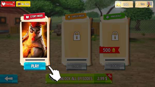 2、有“STORYMODE(故事模式,可玩,显示‘PLAY’)”“CAREERMODE”“KNOCKOUT”,还有“UNLOCKALLEPISODES(解锁所有章节,价格2.99美元)”等信息。