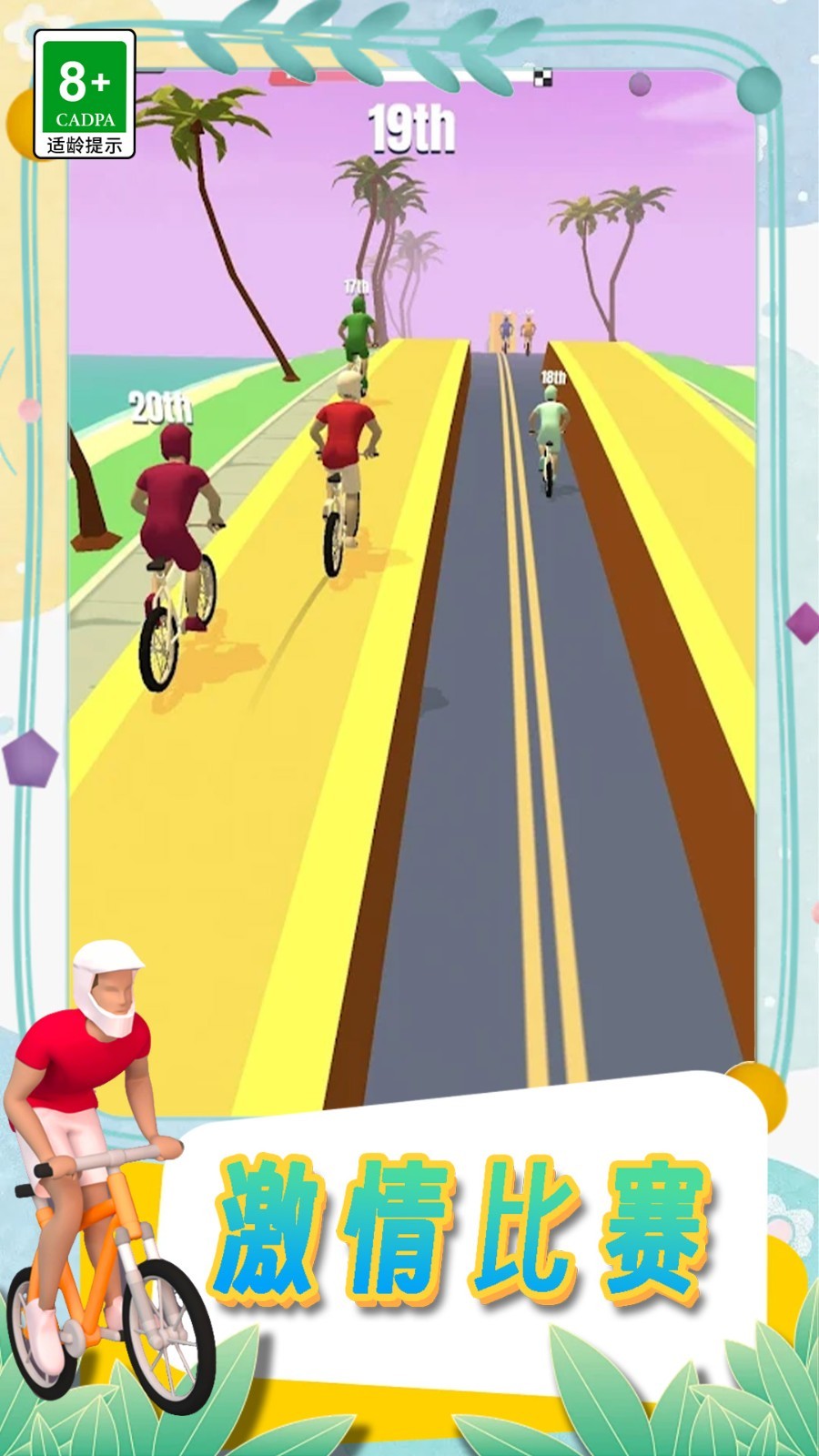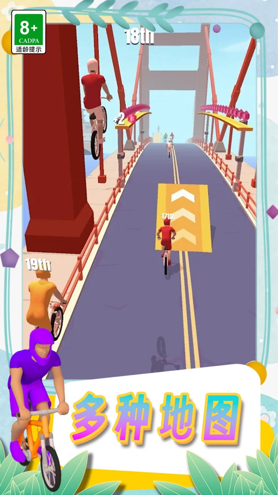 挑战自行车比赛是一款充满趣味的自行车特技比赛作品,玩家将控制自行车手在各式特色赛道上展开竞技,赛道中布满跳台、坡道、障碍物等元素,玩家需在高速骑行中完成跳跃、空中旋转、抓车等炫酷特技动作,既要追求最快的终点冲刺时间,又要通过特技获取额外分数,最终以综合表现胜出,体验特技与竞速结合的双重乐趣。