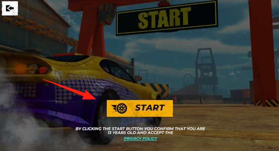 1、在起始界面,点击【箭头】指向的黄色“START”按钮,确认年龄及政策后,开启赛事。