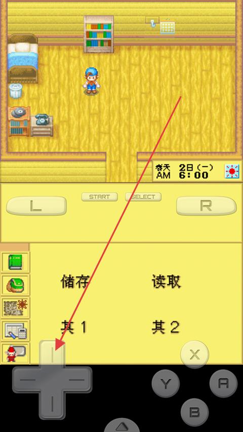 1、开局在房间,熟悉基础操作(移动、交互等),可【储存/读取】存档,按提示开启牧场生活,了解功能按钮。