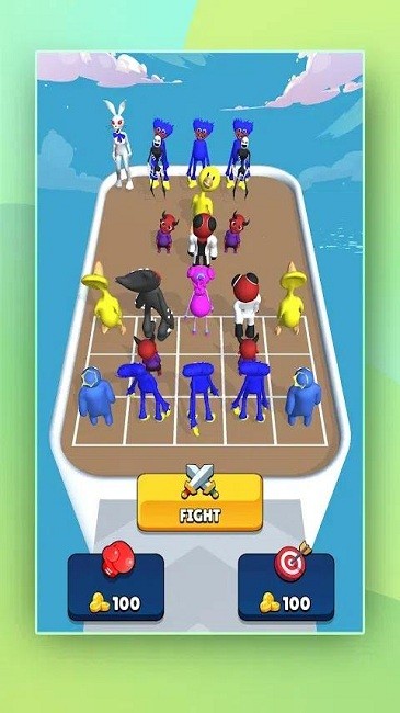 2、 生存大乱斗:8名玩家在逐渐缩小的场地中混战,通过收集彩虹能量提升角色等级,最后存活的玩家获胜。