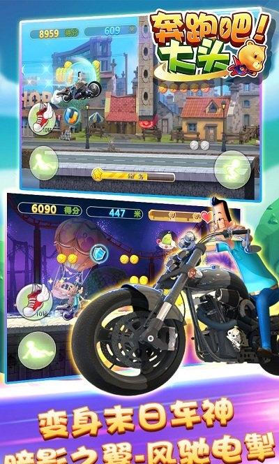 - 奔跑吧大头游戏是一款根据最新大头儿子电影改编的经典冒险跑酷游戏,玩法简单,玩家可选择不同战斗模式,让你在童话世界中与大头儿子一同冒险,作为全球首