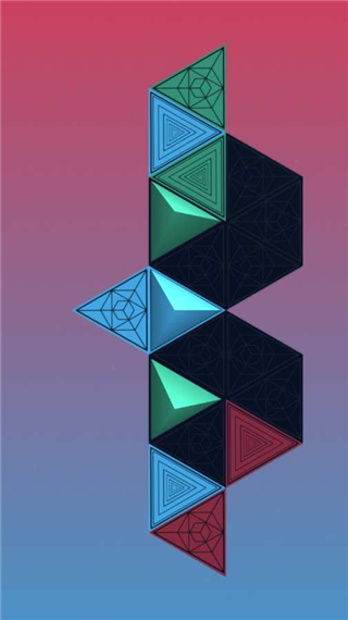 延间的三角体谜题是一款以三角体为核心元素的几何解谜类游戏,采用极简几何美学打造独特视觉语言,通过纯净色块与动态光影营造现代数字艺术感,玩家将在130道手工设计的关卡中,从二维平铺逐步挑战到三维组合,搭配冥想风格的背景音乐,在无商业化干扰的纯粹体验中,锻炼空间想象力与几何思维。