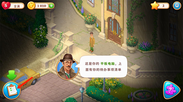 3、开始游戏后点击左下角平板电脑就可以开始完成我们的代办清单了。