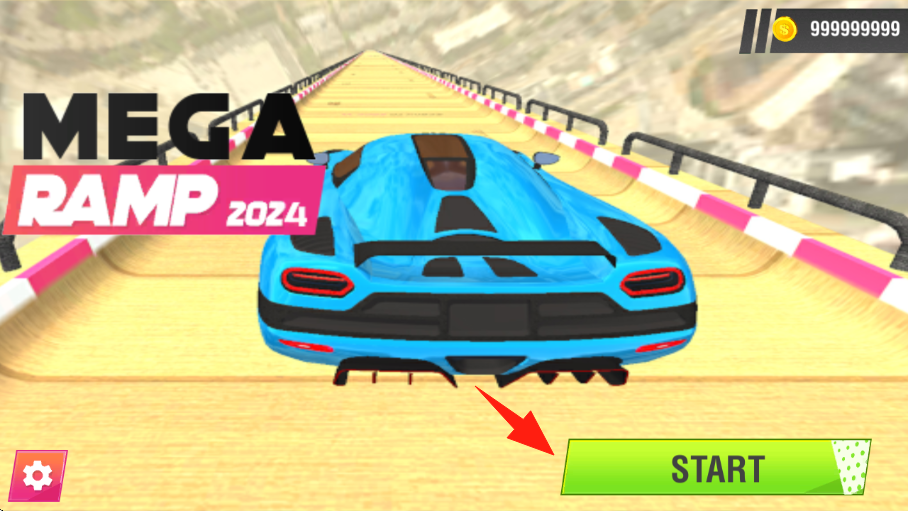 1、在起始界面,点击【箭头】指向的“START”,开启特技赛道挑战。