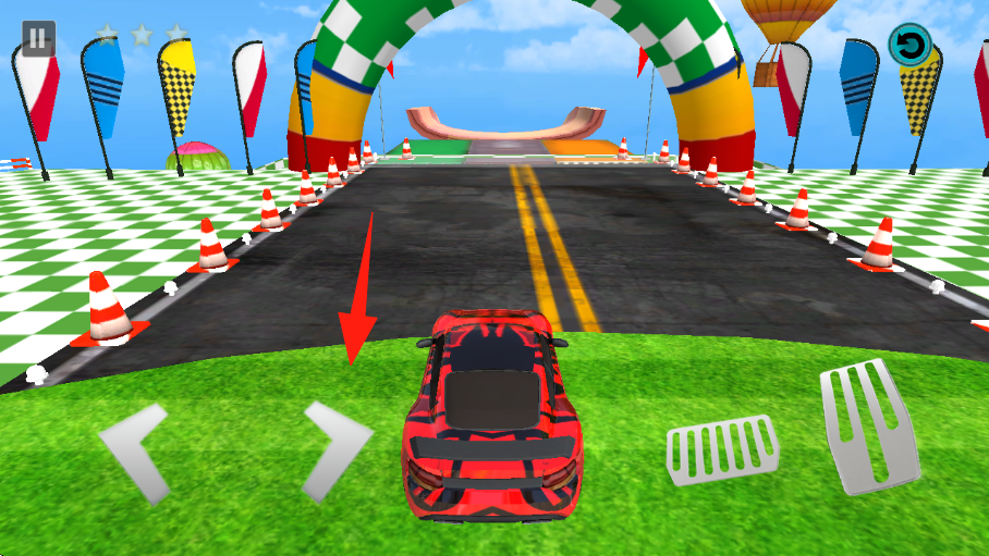 3、驾驶时,通过【箭头】指向的转向按键,操控赛车,应对特技赛道障碍。