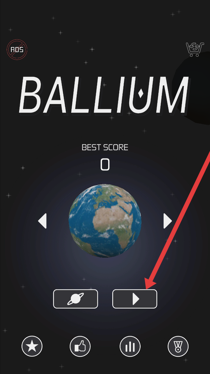 1、在Fido Bowling的游戏主界面,点击右侧带箭头的播放按钮,开启太空主题的球体冒险游戏。