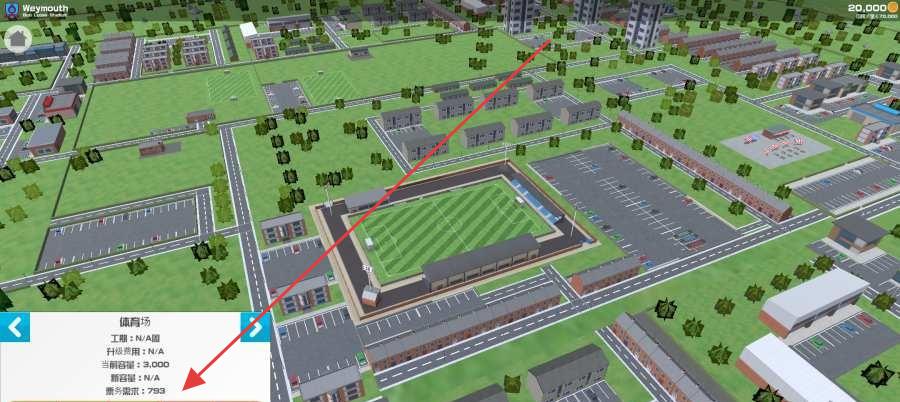3、在球场管理界面,查看体育场数据(容量、等级等),用资金点击【升级】,提升设施,吸引球迷。