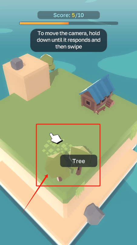 3、按住屏幕滑动移动视角,点击红框里的树完成任务。