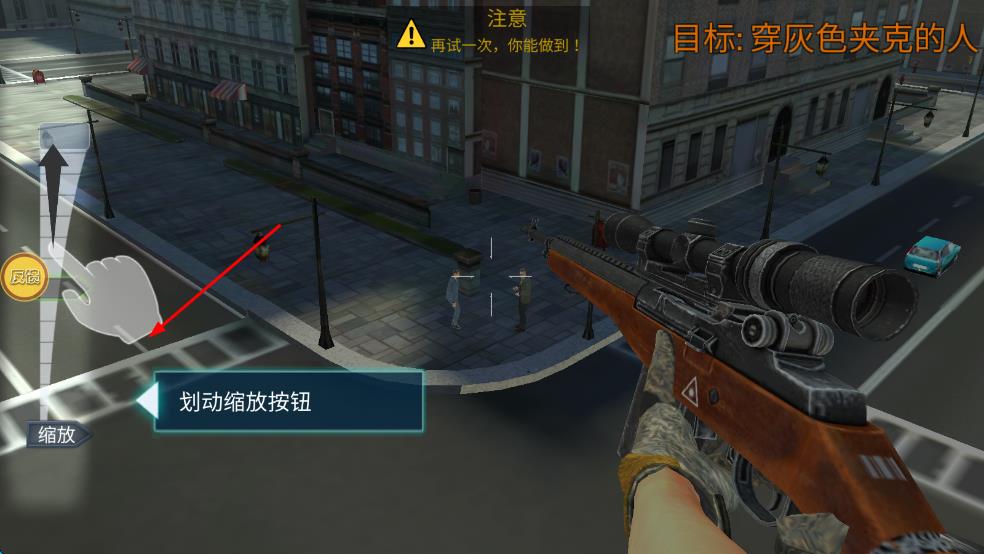 1、进入游戏后首先在任务大厅选择剧情关卡或挑战模式,进入场景后通过双指滑动屏幕调整狙击镜视角,长按屏幕可屏住呼吸稳定准星。