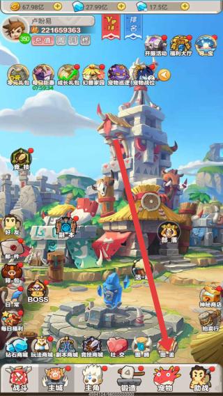 1、在主城界面,点击箭头指向建筑,进入骑宠/宠物系统,查看养成玩法,规划角色战力提升路径。
