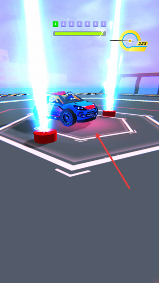 3、抵达充能区(蓝光电柱),驶入触发车辆强化,激活加速/防护效果,出区后借增益持续超车,挑战赛道极限速度与操控。