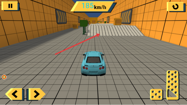 3、点首界面“开始游戏”,选解锁车辆,进入赛道按箭头指引用按键操控赛车前进。