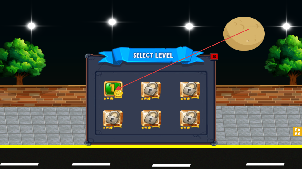 1、进入游戏界面,点击播放按钮,选择关卡(如“SELECTLEVEL”中解锁的第 1 关),开启建筑任务。
