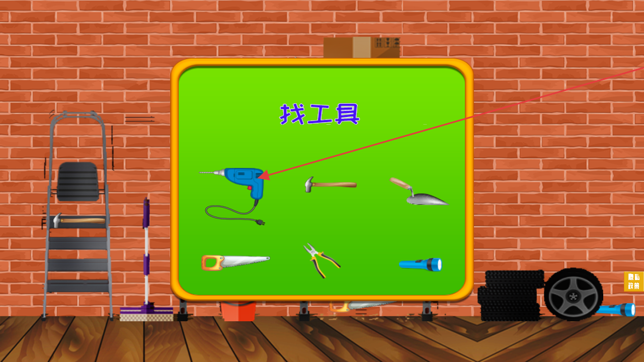 2、在关卡内,完成“找工具”等环节,根据提示(如黑板上的工具图示),在场景中寻找对应工具 。