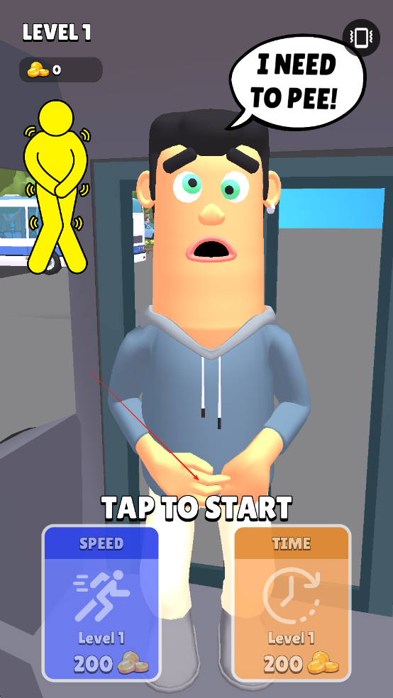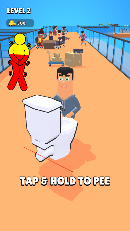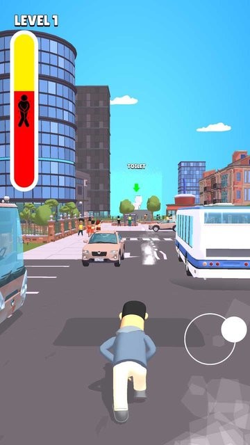 1、进入游戏后滑动屏幕控制角色左右移动,点击屏幕跳跃躲避路障,长按可触发“捂肚冲刺”,注意尿意条随时间减少需尽快找到厕所。