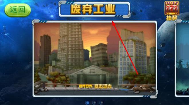 2、在坦克车库界面,点击选中【废弃工业】进入对战场景,开启射击挑战,为后续战斗做好准备。