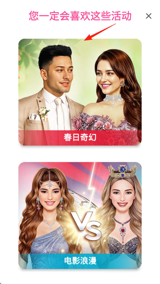 2、查看活动推荐,选感兴趣的活动参与,获取奖励后用于解锁新造型和服饰。