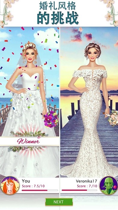 2、多人竞争挑战:参与新娘挑战的多人竞争模式,与其他设计师一对一比拼,从他人服装设计中获取灵感,改善自身风格,争取赢得最佳婚礼设计称号,感受竞技带来的挑战乐趣。