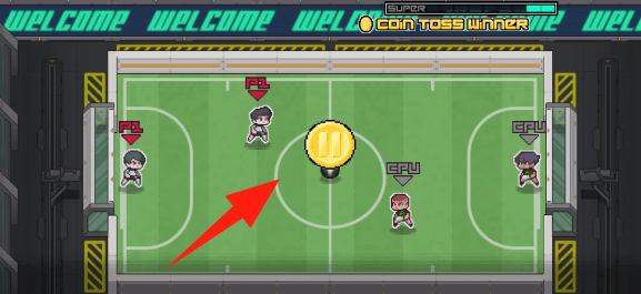 1、开球阶段,操控【箭头】指向球员,争夺中场金币,获得球权。