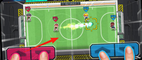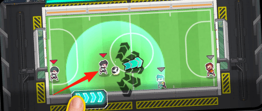 2、进攻时,点击对应按键,让球员释放【箭头】所示技能,突破防线。