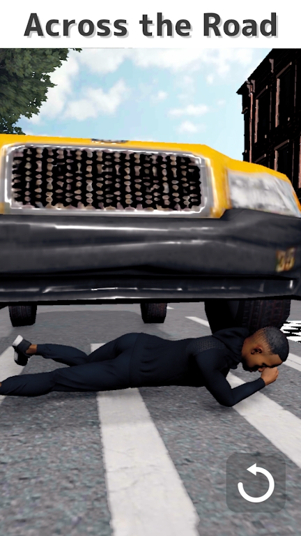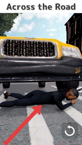 3、呈现了角色过马路时遭遇的“被车撞”失败场景,属于模拟过马路、考验操作躲避危险的休闲游戏画面。