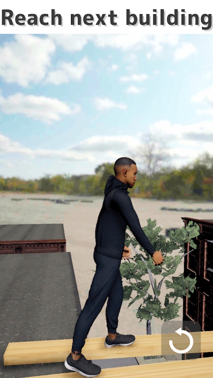 1、文字任务是“到达下一栋建筑”,画面中是一个穿着黑色运动服的男性角色,在利用场景中的植物或物件辅助行动,是一款模拟攀爬或跑酷类。