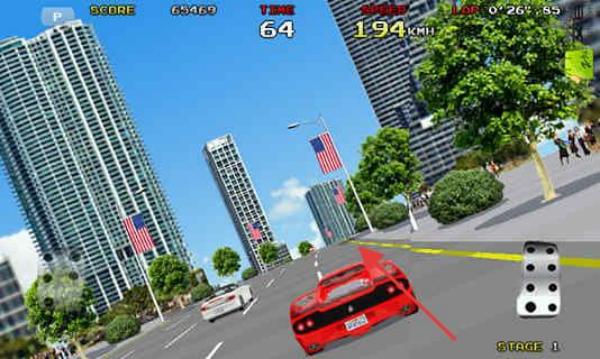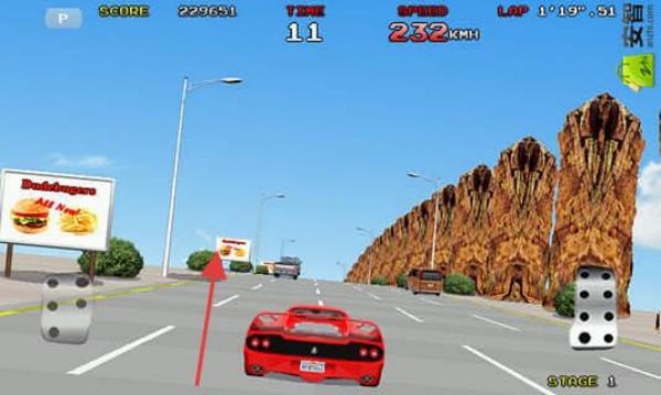 2、公路竞速时,沿【箭头】方向,控制红色赛车,加速超越其他车辆。