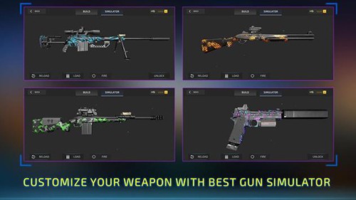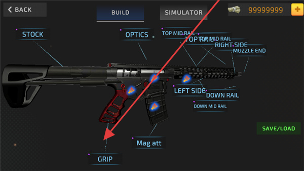 3、在SIMULATOR模式,选用组装/预设枪支,测试射击效果,根据体验调整配件(如换握把提升稳定性),利用金币解锁更多部件。