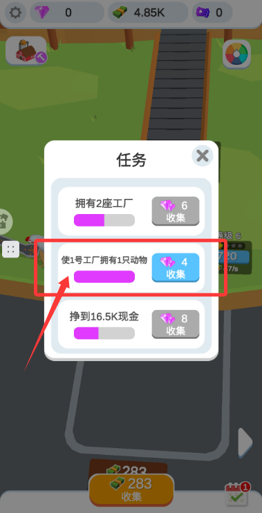 3、完成初级工厂目标并成功培育首只宠物后,系统将自动发放钻石奖励用于解锁新功能。