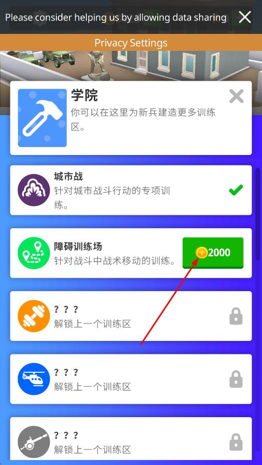 2、通过完成训练任务获取资源,升级训练设施并解锁新的训练项目,根据士兵能力短板调整训练重点。
