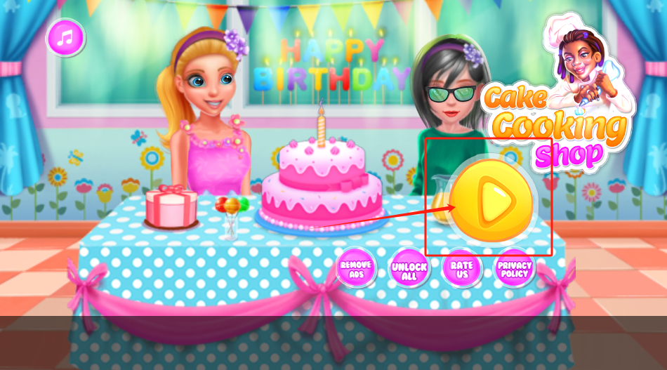 1、点CAKECOOKINGSHOP开始游戏,看桌上蛋糕和礼物,女孩在等,别管右边按钮。