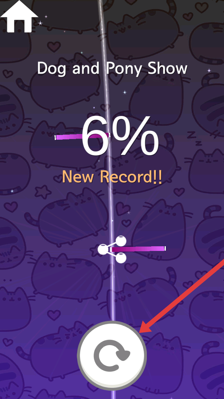 3、游戏结束后,界面显示进度(6%)与【New Record】,点击下方重玩按钮,可再次挑战该曲目突破记录。