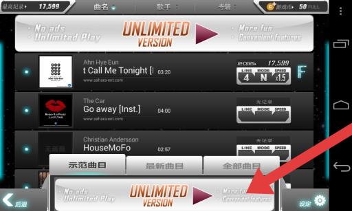 3、在歌曲列表页,选择曲目、难度(N15)开启演奏,还可通过【示范曲目】【最新曲目】【全部曲目】分类查找想玩的音乐。