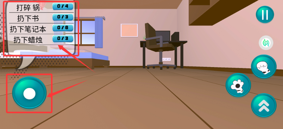 3、每个场景设有多个破坏任务,滑动屏幕控制猫咪移动,寻找最佳角度实施破坏行动。