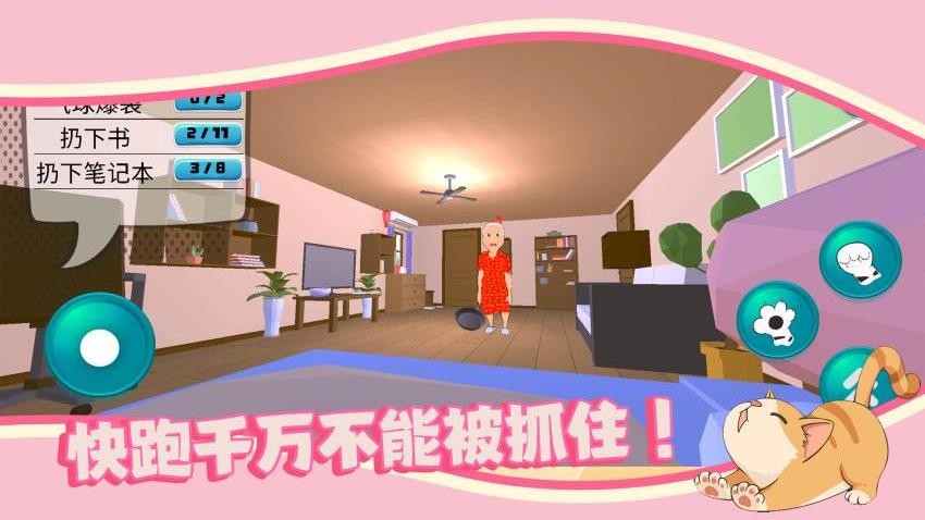 1、化身淘气小猫在小镇自由探索,溜进各式房屋搞破坏,完成系统发布的捣蛋任务。