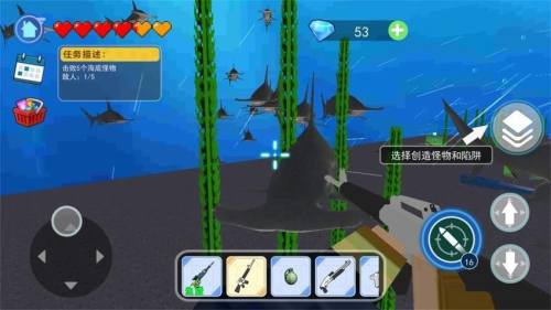 2、动态战斗系统赋予玩家高度自由,通过水下炮弹精准打击目标,击杀怪物后可解锁新武器与道具,持续提升战斗能力。