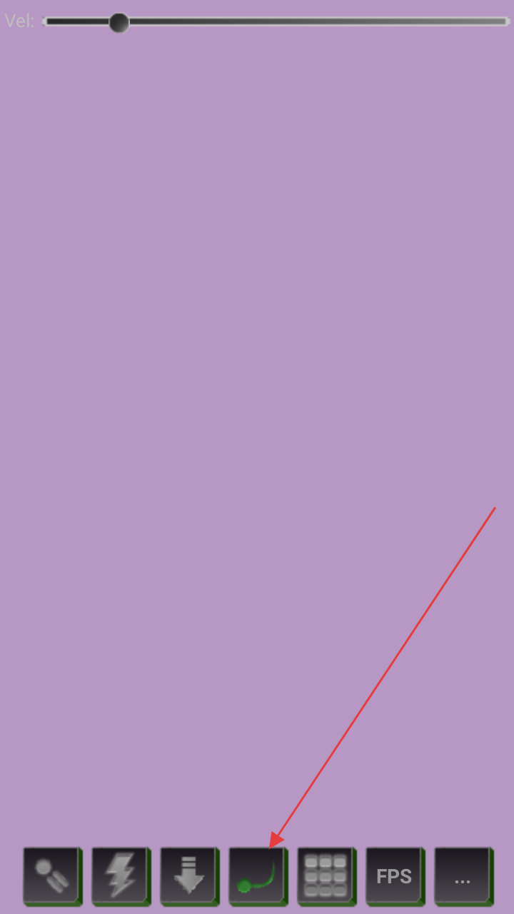 1、滑动“Vel”调节速度,点击下方功能按钮,如绿色画笔图标,绘制粒子轨迹。