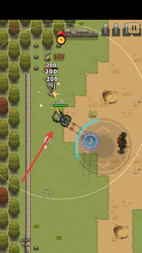 2、自动锁定最近目标疯狂输出,子弹打光了就用车轮碾过去。