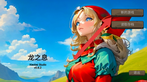 1、由XiaobaiStudio开发,界面有“新的游戏”“读取存档”“退出”按钮,呈现了像素风与卡通渲染结合的角色形象,背景是蓝天白云、青山草地的清新场景。
