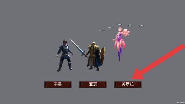 2、实体信息有三个角色,分别是子墨(持剑铠甲形象)、亚瑟(持剑盾的铠甲形象)、芙罗拉(粉色飞行角色形象)。