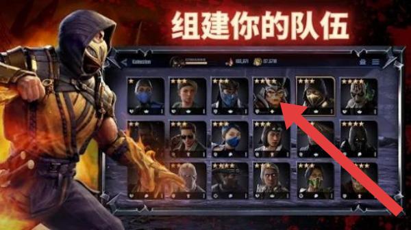 2、画面中文字提示“组建你的队伍”,展示了队伍组建界面,能看到多个不同角色卡牌,左侧是一位身着战斗服饰、带有火焰特效的男性角色。