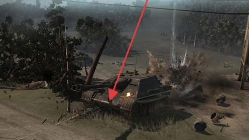 1、指挥坦克作战时,利用地形(树林、废墟)隐蔽,遭遇敌方坦克(如首图、中图场景),先远程火力压制。