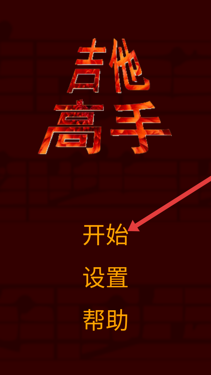 1、进入吉他高手的主界面,需要点击【开始】选项,开启音乐演奏冒险,可先熟悉界面功能再开始。