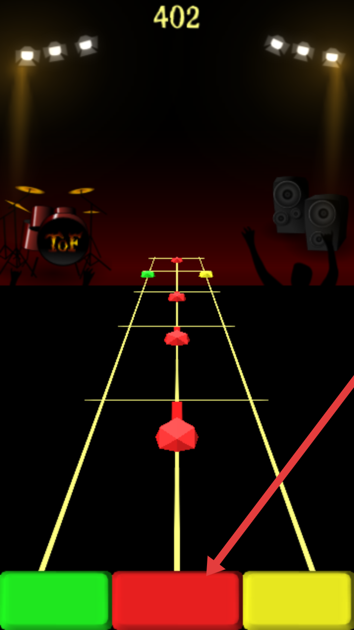 3、演奏时观察红色音符下落轨迹,待其到达下方红色按键区域时精准点击,配合节奏积累分数,提升演奏评价。