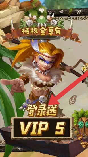2、进入主界面,点击【登录送VIP-5】按钮,领取登录奖励,获取VIP特权,增强游戏体验。