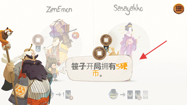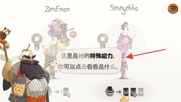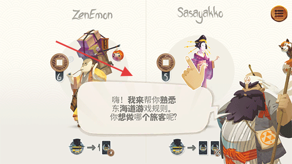 1、开局选“ZenEmon”“Sasayakko”等旅客角色,了解其初始硬币、特殊能力后开始游戏。