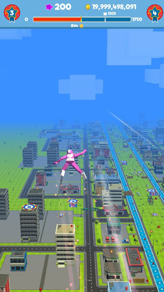 2、飞行过程中若击中浮空道具,将触发加速、弹跳或直接获得钻石等奖励,合理利用场景机制可创造高分记录。