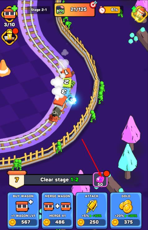 3、闲置战斗机制:强化后的列车可自动接合并消灭逼近的僵尸,见证闲置防御的奇观,轻松应对持续的僵尸威胁。
