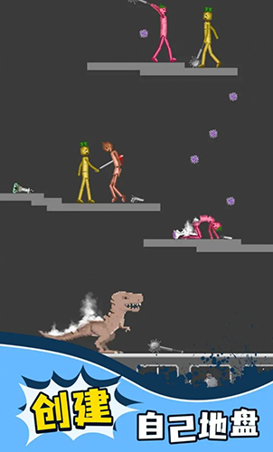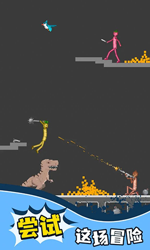 3、场景破坏与合作PK:制作不同场景并尽情破坏以通过关卡,还能和合作伙伴一起进行选择与PK,通过虚拟操纵杆控制角色行动。